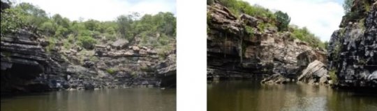 Entre os 15 trechos com riscos, tem blocos soltos como resultado do desmantelamento rochoso, mas sem indicativo de risco iminente; Presença de fraturas fechadas e abertas, e blocos instáveis, que potencializam o movimento pela encosta íngreme; Paredões com declividade baixa, possuem cicatrizes indicativas de queda de blocos; Presença de blocos em balanço, demonstra instabilidade rochosa; Presença de cicatrizes de quedas de blocos e de decomposição do material. Ponto com parada para banho não recomendado em período chuvoso; Encosta íngreme, com muitos blocos rolados à margem do canal e com probabilidade de escorregar no topo; Encosta com cicatrizes de queda de blocos recentes com muitos blocos instáveis no topo; Encosta íngreme com sinais de movimentação de massa por desplacamento, quedas e deslizamento de blocos; Encosta de elevada inclinação com movimentação de blocos, posicionados na borda do patamar do relevo e com forte tendência a deslizar ou tombar; Trecho sob efeito de erosão da água na base da encosta, que deixa blocos sem sustentação e com possibilidade de queda ou desmoronamento; presença significativa de blocos instáveis no topo de toda a encosta e sujeitos a processos de tombamento; Marcas de ação erosiva da água e de forte ação do intemperismo entre camadas com decomposição dos níveis mais finos, com maior suscetibilidade ao movimento; Blocos instáveis. Trecho que precisa de monitoramento e não utilização para paradas e banho; Paredões com evidente desgaste erosivo na base pela ação da movimentação da água, facilitando a queda de blocos. Trecho inadequado para visitação em período chuvoso; e Encosta com planos verticais e horizontais de instabilização, cicatrizes de queda de blocos e sem sustentação presente na porção média e base. Risco de movimentos bruscos de queda de blocos de dimensões consideráveis.