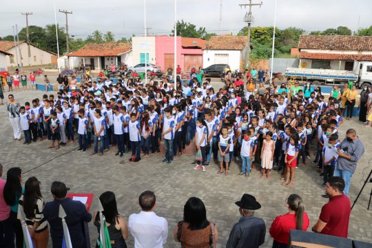 "Um dia histórico pra nossa cidade. Hoje completamos 30 anos de emancipação política. Entregamos hoje a nossa população uma praça novinha, entregamos as chaves dos quiosques da praça a quatro famílias empreendedoras, assinamos a ordem de serviço para a construção de 15 mil metros de calçamento na sede. Entregamos 3 veículos zero quilômetro para a saúde do município. Agradeço imensamente a presença de todas às autoridades que estiveram conosco no dia de hoje. Agradeço também ao secretário de estado das cidades Gustavo Xavier e ao deputado federal Fábio Abreu e ao deputado estadual Fábio Xavier." Disse o prefeito Murilo Bandeira.