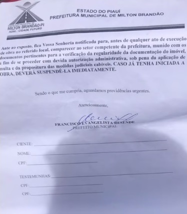 A política do quanto pior melhor está a todo vapor no município de Milton Brandão, na região norte do Piauí. O ex-prefeito Casa Grande, que perdeu a tentativa de reeleição em 2020 denunciou que o atual prefeito, Evangelista Resende (PP) está tentando atrapalhar a realização de obras naquele município.