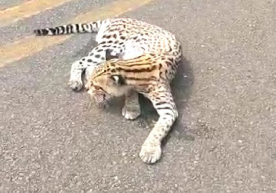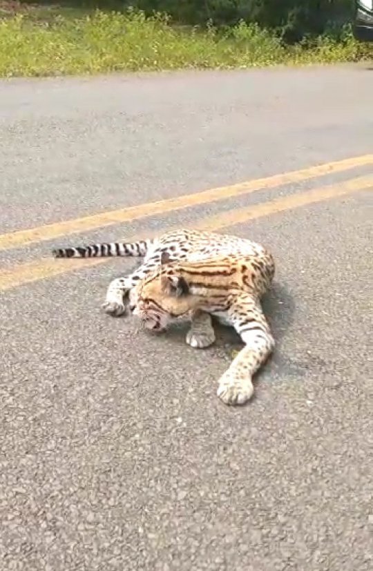 As informações não são precisas, mas possivelmente o felino foi atropelado e conseguiu sobreviver retornando à mata por conta própria.