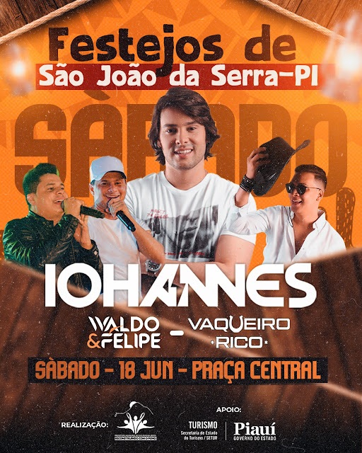 A programação dos festejos é realizado pela Prefeitura de São João da Serra, com apoio do Governo do Estado, por meio da Secretaria Estadual de Turismo e vai até o dia 23 de junho.