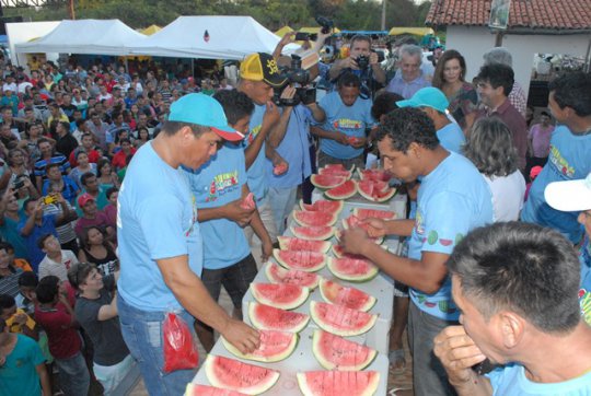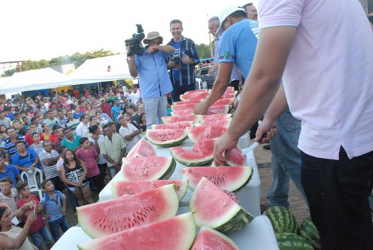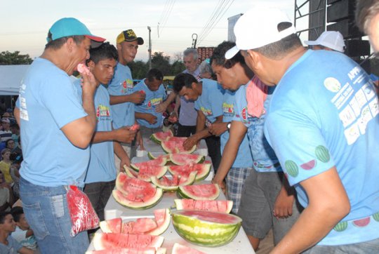 Todos os competidores são pesados e ficam em uma passarela no meio da multidão. Cerca de 15 melancia são fatiadas e a competição começa. É estipulado um tempo, mas na medida em que o competidor se satisfaz, sai do jogo e é pesado novamente. O vencedor levou R$500,00.