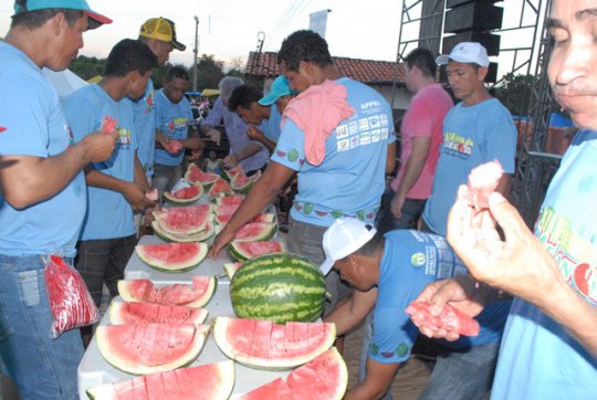 Homem come 3,4 kg e vence concurso na festa da melancia em Jatobá do Piauí