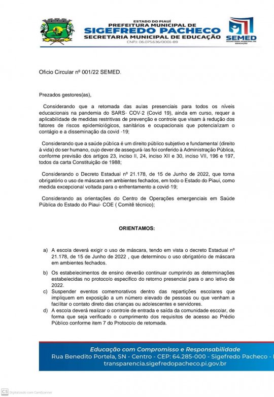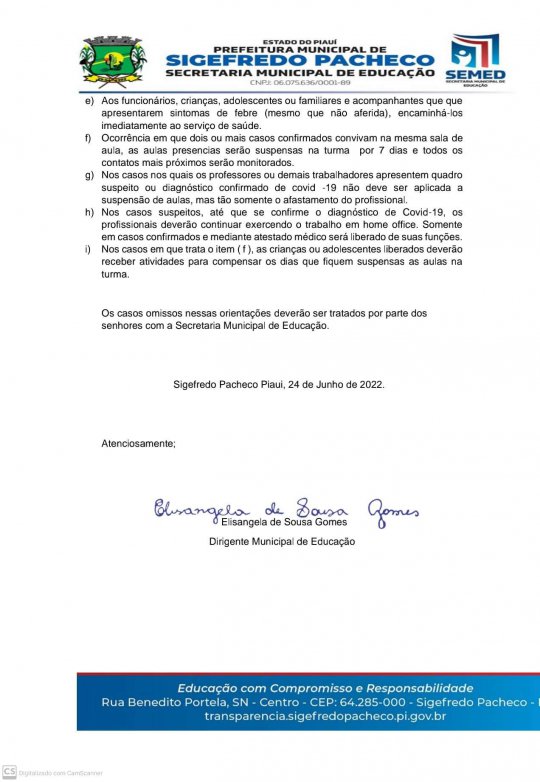 A Secretaria Municipal de Educação de Sigefredo Pacheco-PI divulgou nesta segunda-feira (27) um ofício com orientações depois do aumento de casos de COVID-19 no município.