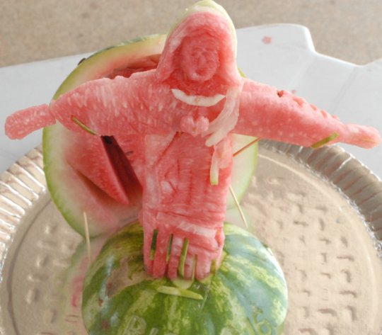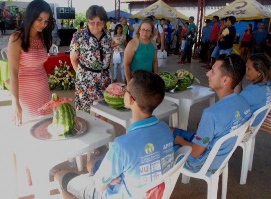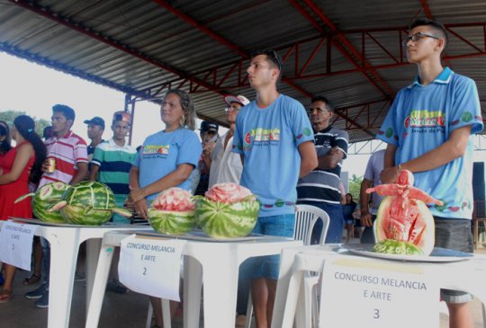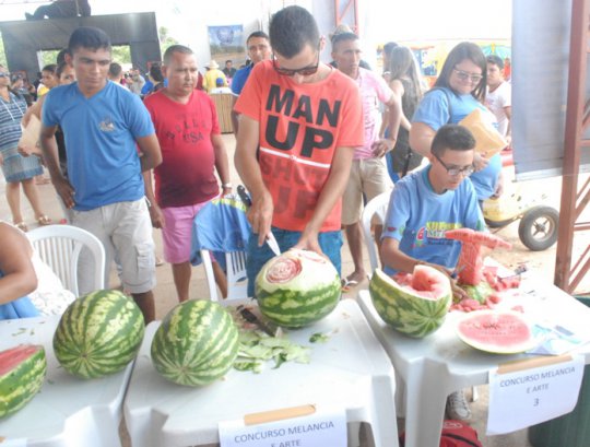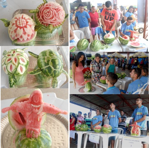 Já conhecido por mulheres com equilibram uma melancia na cabeça e dançam forró sem deixar a fruta cair, este ano uma nova competições mexeu com dotes artísticos técnicos dos competidores. Arte decorativa com a melancia. Cinco candidatos se inscreveram e o que se viu foi obra de arte mesmo.