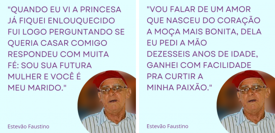 "Quando eu vi a princesa já fiquei enlouquecido Fui logo perguntando se queria casar comigo. Respondeu com muita fé: sou sua futura mulher e você é meu marido."