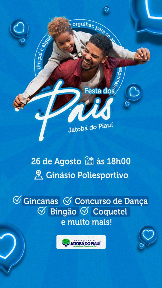 A Prefeitura de Jatobá do Piauí, na pessoa do prefeito Hilton Gomes, está preparando uma festividade especial para homenagear os pais pela passagem de seu dia.