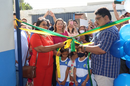 A escola que atende mais de cinco bairros e comunidades da zona rural, recebeu uma completa reforma com salas climatizadas, salas para os professores e espaço amplo de lazer para as crianças. Na oportunidade, o Prefeito Maxwell realizou o corte da fita ao lado da diretora Maíza Campelo e da Secretária de Educação Sônia Lira.