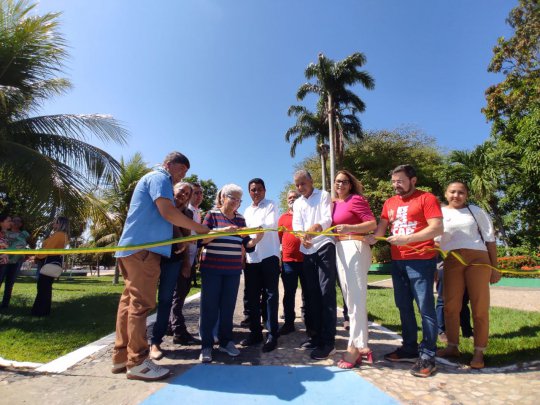 Já retornando ao centro da cidade, Regina Sousa acompanhada do Prefeito, inaugurou a reforma da praça João Ferreira. No local, foi instalada uma fonte em homenagem a primeira bomba que puxou água no município.