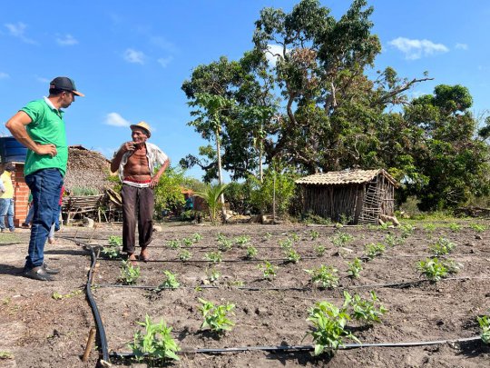 O senhor Mateus Estacina aumentou a plantação do seu quintal após receber o kit. “Esse kit melhorou demais aqui, o meu terreno é grande e aqui eu planto tudo. Ta bom demais”, disse o agricultor.