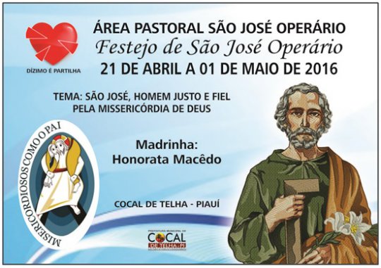 A paróquia de São José Operário divulgou a programação religiosa para os festejos do padroeiro de Cocal de Telha que acontecerá de 21 de abril a 1º de Maio.