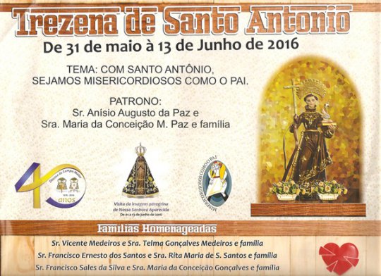 Paróquia de Santo Antonio divulgou a programação e a noite de Cocal de Telha será dia 10 de Junho