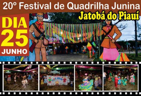 A prefeitura de Jatobá do Piauí divulgou nesta terça-feira que o 20º Festival de quadrilhas juninas acontece no dia 25 de junho, um sábado. O evento é tradicional na cidade.