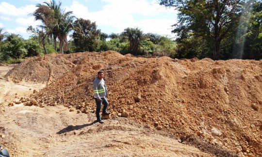 O material que será usado na terraplanagem já estar todo escavado e pronto para as maquinas e caçambas usarem para o serviço. Foi feito, pelo Secretario de Obras Manoel, uma visita ao local do material.