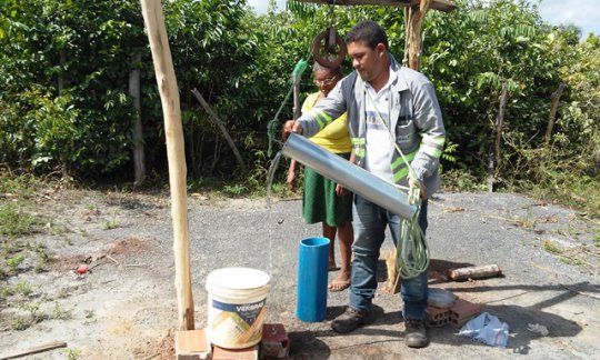 Durante a visita à obra, encontramos uma senhora chamada, Luzia, moradora da Comunidade Varjota que estava indo pegar água e disse estar muito feliz pelo Prefeito Solteiro ter mandado perfurar um poço naquela comunidade. Dona Luzia falou que nunca haviam feito ali um serviço de tamanha importância.